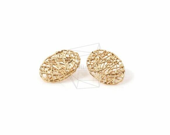 ERG-560-MG/2PCS/Netted Oval Shape Post Earring/15mm X 20mm/Matte Gold Plated over Brass,925 Silver Post