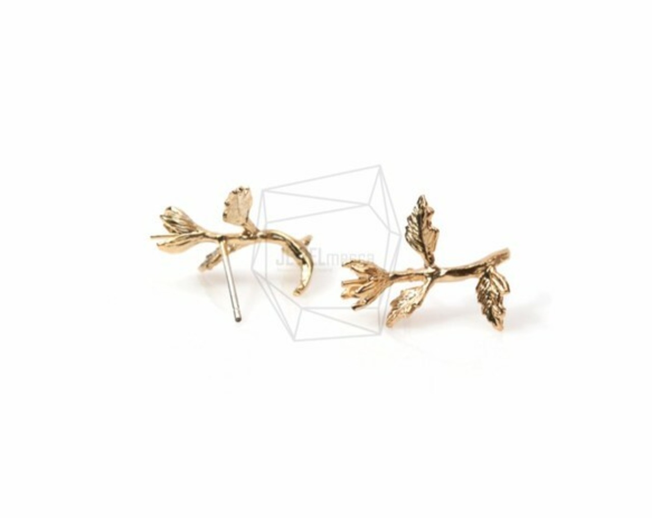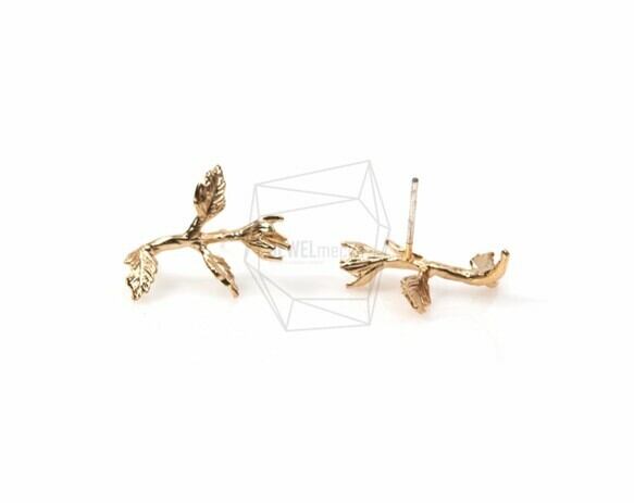 ERG-561-MG/2PCS/Tiny Leaf Post Earring/15mm X 20mm/Matte Gold Plated over Brass,925 Silver Post