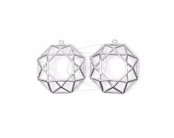 PDT-1235-MR/2PCS/Octagon Star Pendant/25mm X 25mm/Matte Rhodium Plated over Brass