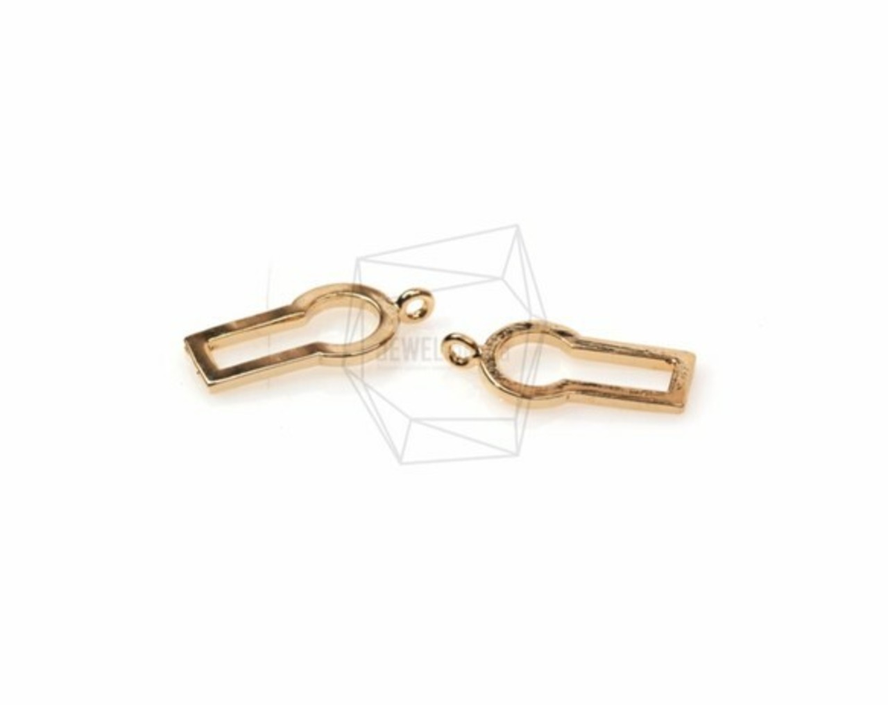 PDT-1246-G/2PCS/Key Hole Pendant/5mm X 15mm/Gold Plated over Brass