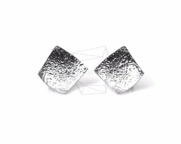 ERG-555-MR/2PCS/Texture Square post Earring/15mm X 15mm/Matte Rhodium Plated over Brass,925 Silver Post