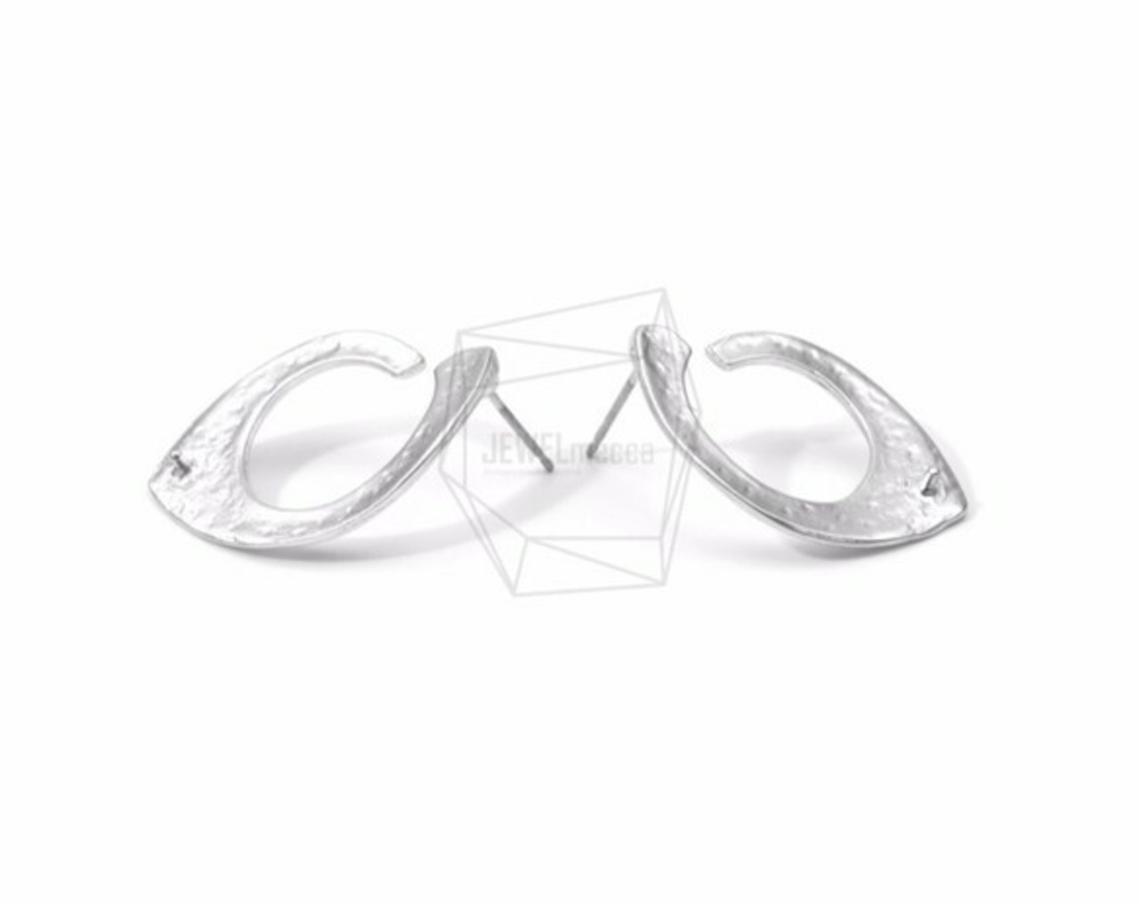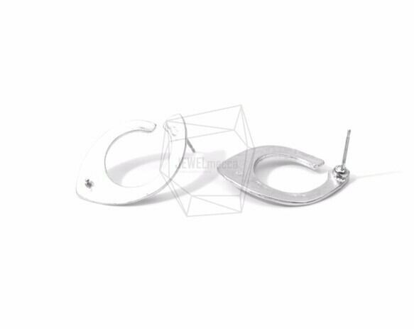 ERG-571-MR/2PCS/V Shape Frame Post Earring/20mm X 25mm/Matte Rhodium Plated Over Brass,925 Silver Post