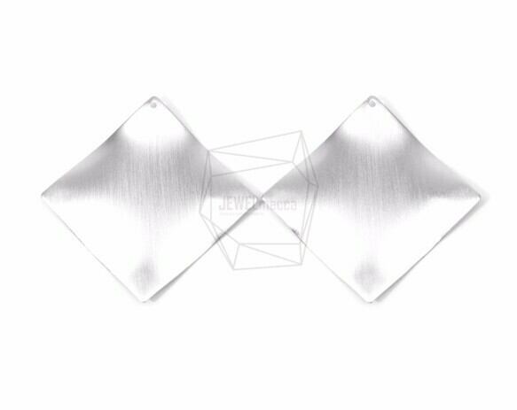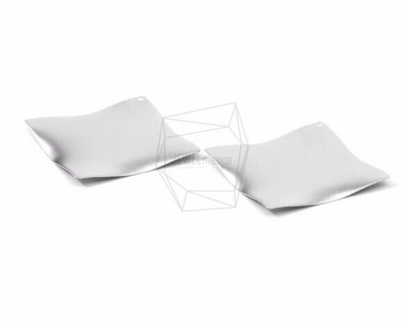 PDT-1256-MR/2PCS/Brush Textured Rhombus Wave Pendant/50mm X 50mm/Matte Rodium Plated Over Iron