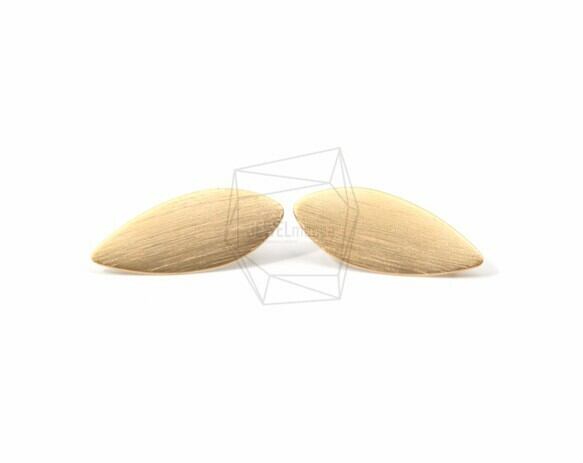 ERG-570-MG/2PCS/Plain Leaf Brush Textured Post Earring/10mm X 30mm/Matte Gold Plated over Brass,Titanium Post