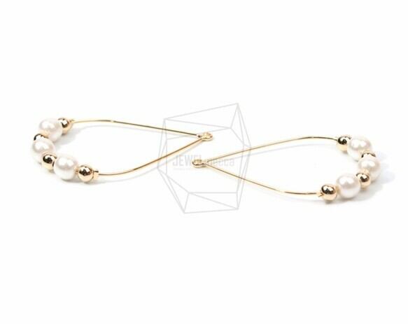 PDT-1251-G/2PCS/Wire Tear Drop With Pearls Pendant/30mm X 45mm/Gold Plated over Brass,Imitation pear