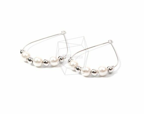 PDT-1251-R/2PCS/Wire Tear Drop With Pearls Pendant/30mm X 45mm/ Rhodium Plated over Brass, Imitation pear