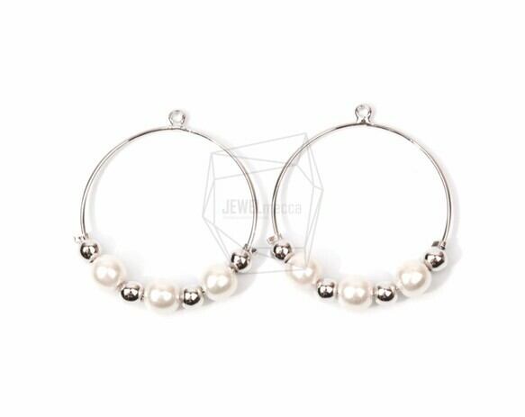 PDT-1252-R/2PCS/Wire Round With Pearls Pendant/30mm X 35mm/Rhodium Plated over Brass, Imitation pear