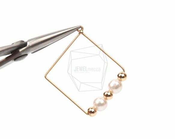 PDT-1254-G/2PCS/Wire Rhombus With Pearls Pendant/40mm X 40mm/Gold Plated over Brass,Imitation pear