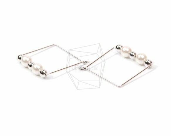 PDT-1254-R/2PCS/Wire Rhombus With Pearls Pendant/40mm X 40mm/Rhodium Plated over Brass,Imitation pear