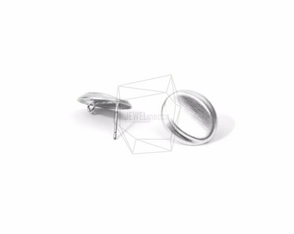 ERG-582-MR/2PCS/Coffee Bean Shape Bushed Texture Post Earring/15mm X 15mm/Matte Rhodium Plated Over Iron, Titanium Post