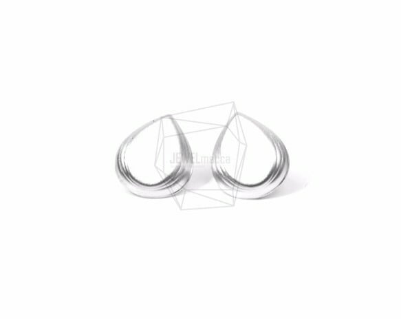 ERG-584-MR/2PCS/Tear Drop Shape Brushed Texture Post Earring/15mm X 15mm/Matte Rhodium Plated Over Iron, Titanium Post