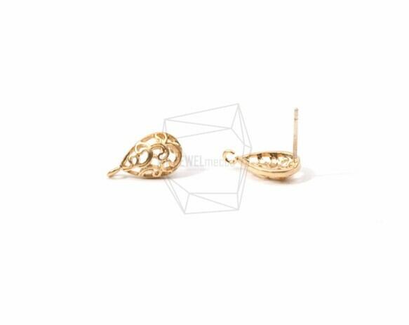 ERG-588-MG/2PCS/Tear Drop Post Earring/10mm X 15mm/Matte Gold Plated Over Brass, 925 Silver Post