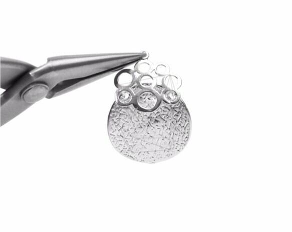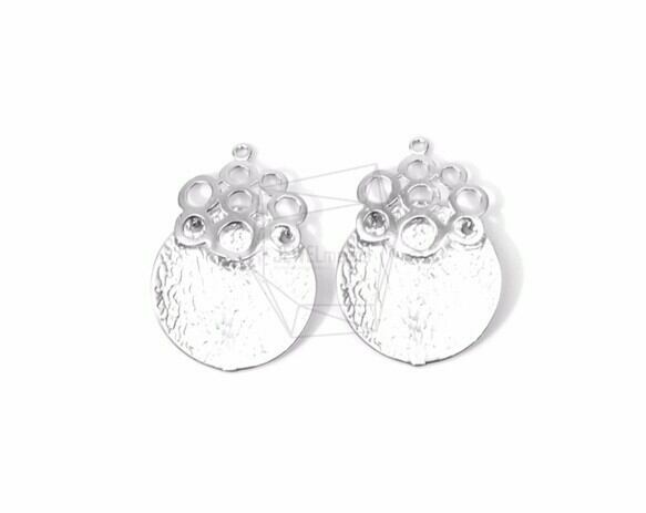 PDT-1271-MR/2PCS/Multi Circle Bubble With Round Leather Textured Pendant/20mm X 25mm/Matte Rhodium Plated Over Brass