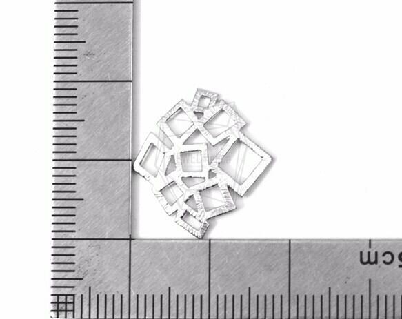PDT-1275-MR/2PCS/Multiple Squares Brushed Texture Pendant/20mm X 20mm/Matte Rhodium Plated Over Brass