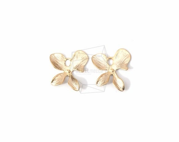 PDT-1277-MG/2PCS/Orchid Flower Leaf Brushed Texture Pendant/15mm X 15mm/Matte Gold Plated Over Brass