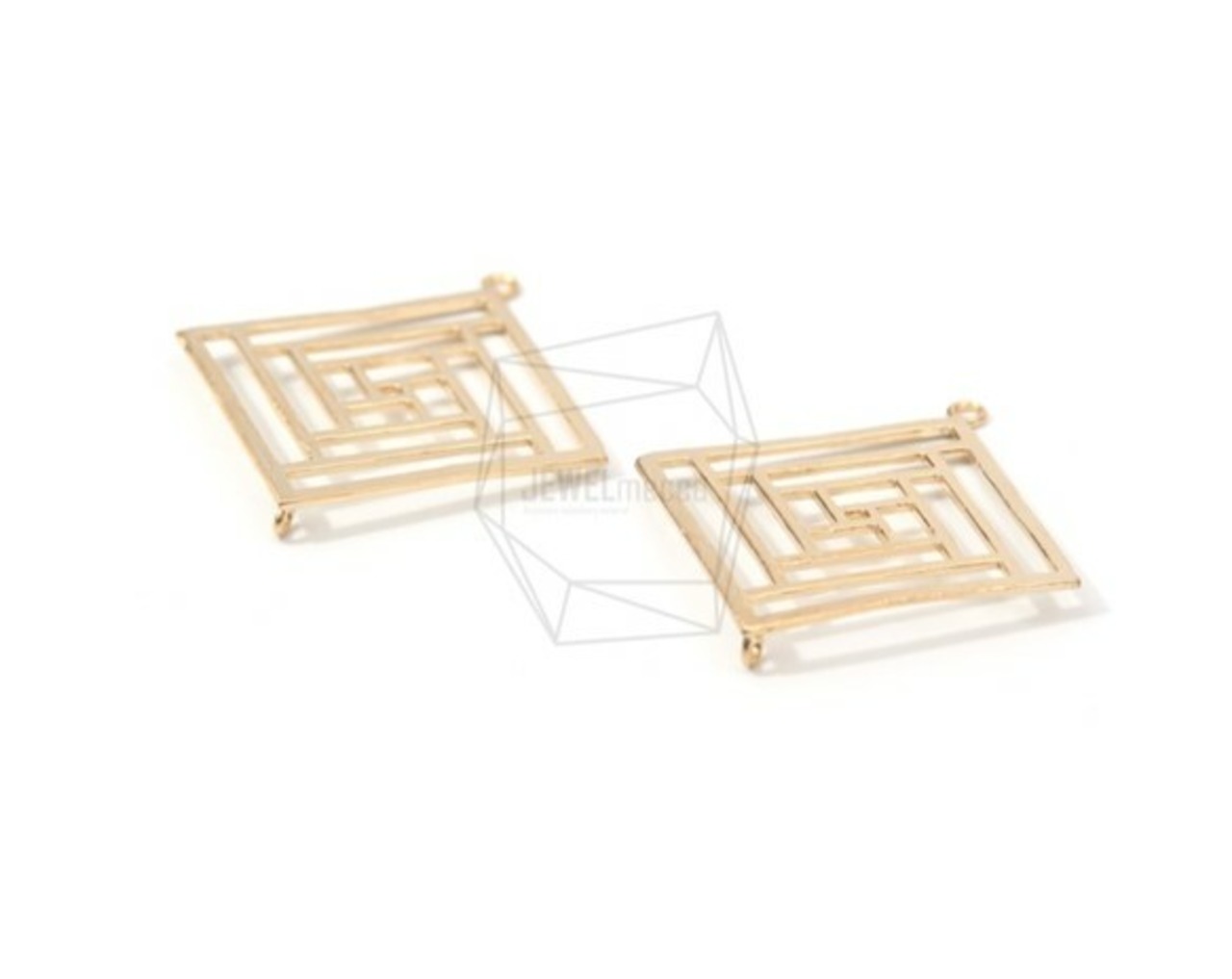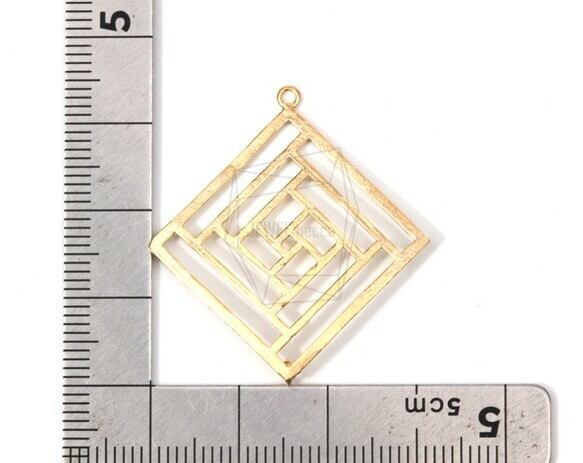 PDT-1266-MG/2PCS/Plaid Patterned Rhombus Pendant/35mm X 35mm/Matte Gold Plated Over Brass