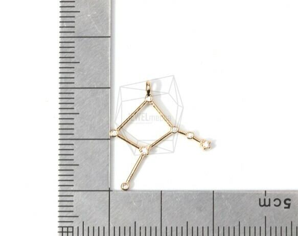PDT-1308-G/1PCS/Libra Zodiac Constellation With Cubic Zirconia Pendant/20mm X 20mm/Gold Plated Over Brass ,Cubic Zirconia