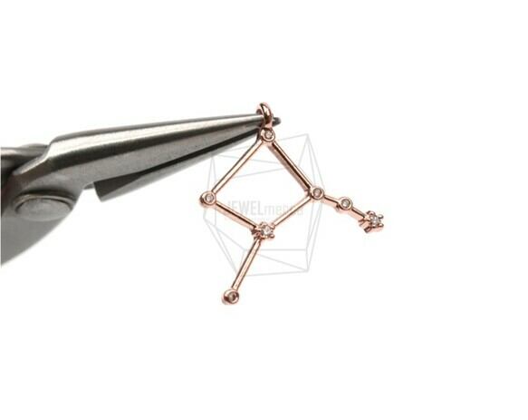 PDT-1308-P/1PCS/Libra Zodiac Constellation With Cubic Zirconia Pendant/20mm X 20mm/Rose Gold Plated Over Brass ,Cubic Zirconia