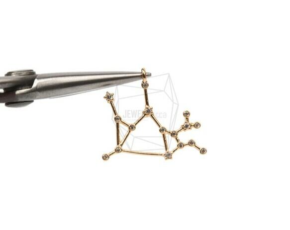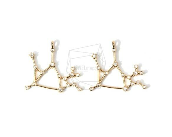PDT-1309-G/1PCS/Sagittarius Zodiac Constellation With Cubic Zirconia Pendant/20mm X 20mm/Gold Plated Over Brass