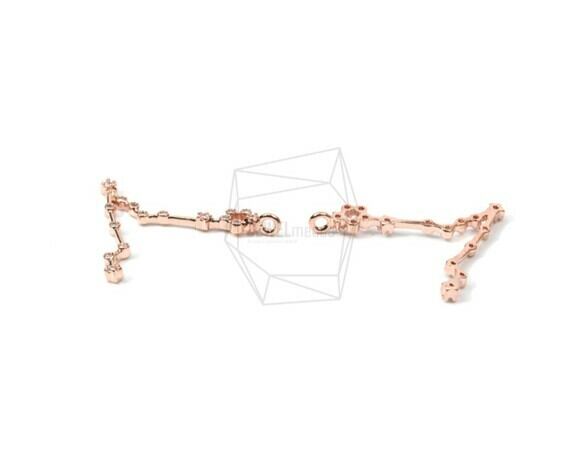 PDT-1310-P/1PCS/Pisces Zodiac Constellation With Cubic Zirconia Pendant/20mm X 25mm/Rose Gold Plated Over Brass