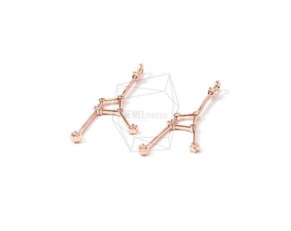 PDT-1312-P/1PCS/Cancer Zodiac Constellation With Cubic Zirconia Pendant/15mm X 30mm/Rose Gold Plated Over Brass