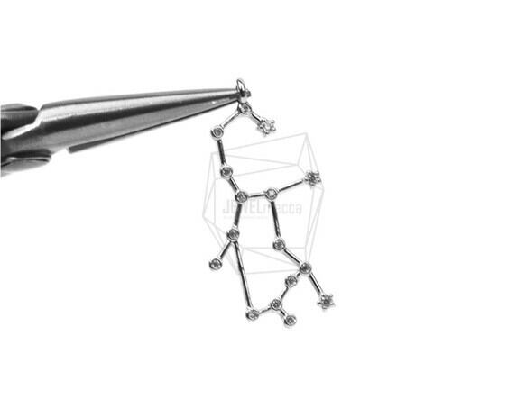 PDT-1313-R/1PCS/Virgo Zodiac Constellation With Cubic Zirconia Pendant/15mm X 30mm/Rhodium Plated Over Brass