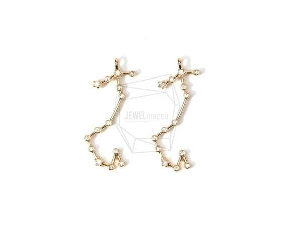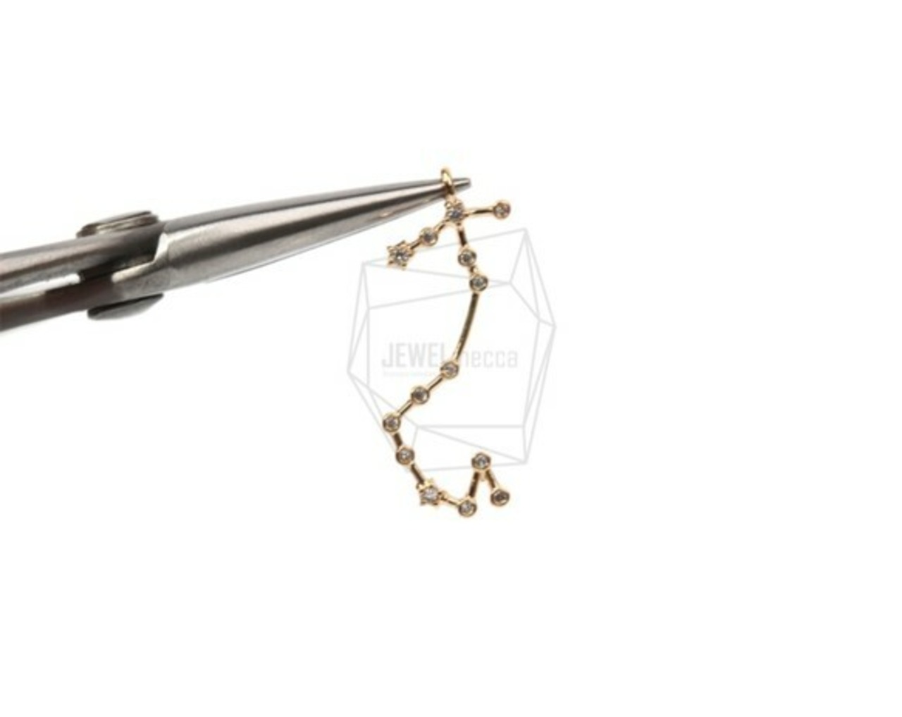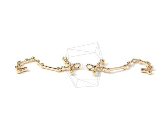 PDT-1314-G/1PCS/Scorpio Constellation With Cubic Zirconia Pendant/10mm X 25mm/Gold Plated Over Brass