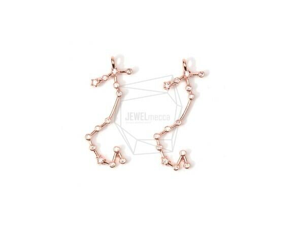 PDT-1314-P/1PCS/Scorpio Constellation With Cubic Zirconia Pendant/10mm X 25mm/Rose Gold Plated Over Brass