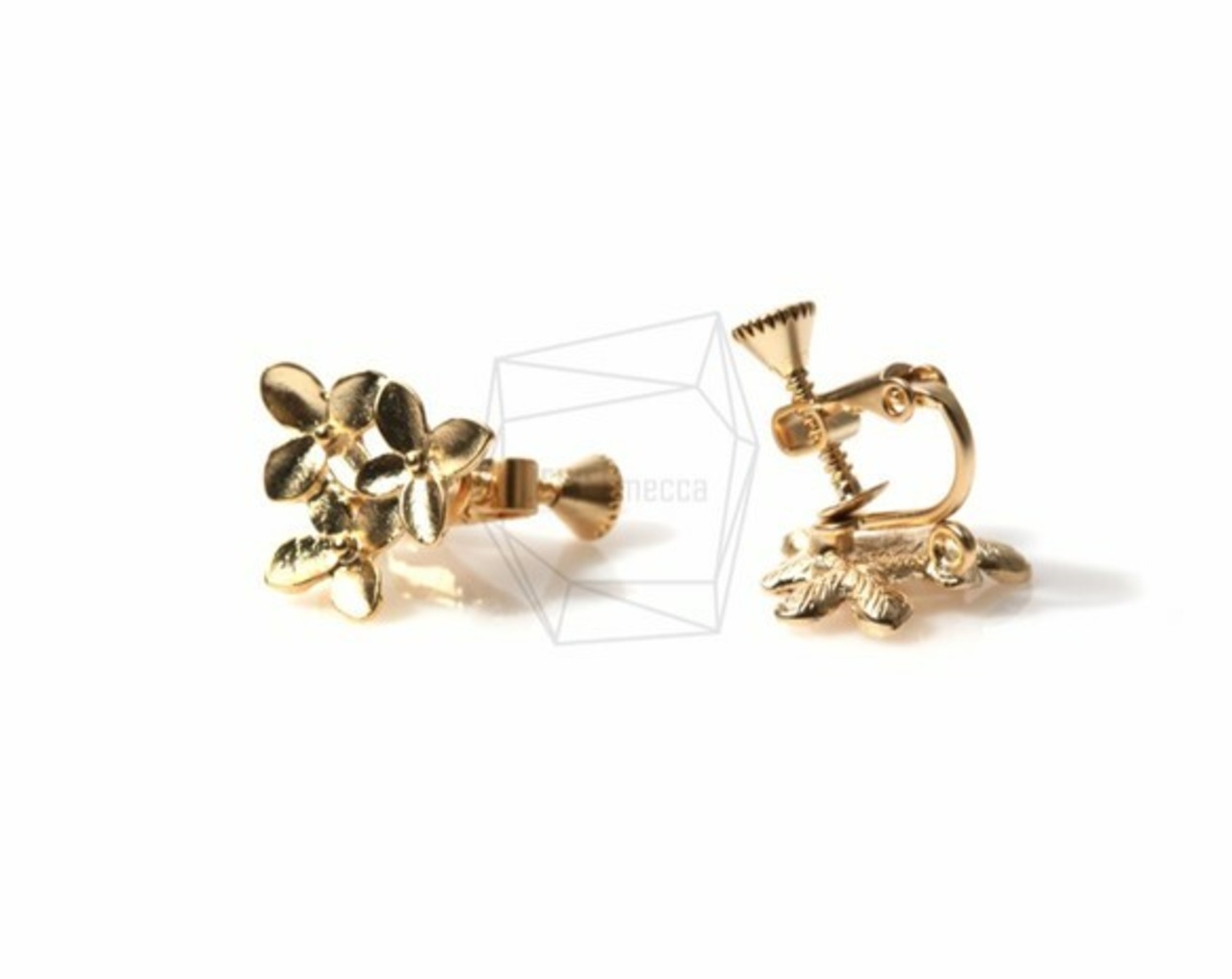 ERG-315-MG/2PCS/No Piercing Flower Cluster Earring/15mm x 18mm/Matte Gold Plated over Brass