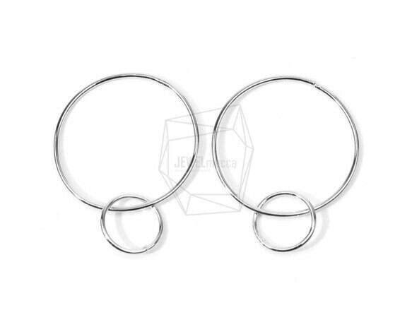 PDT-1299-R/2PCS/Linked Circle Pendant/35mm X 40mm/Rhodium Plated Over Brass