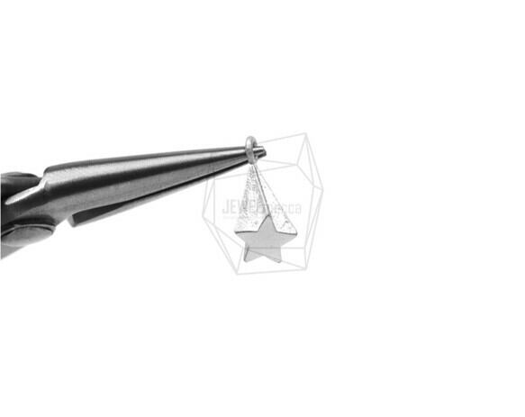 PDT-1303-MR/2PCS/Star Column Pendant/5mm X 15mm/Matte Rhodium Plated Over Brass