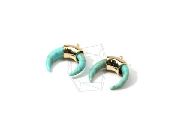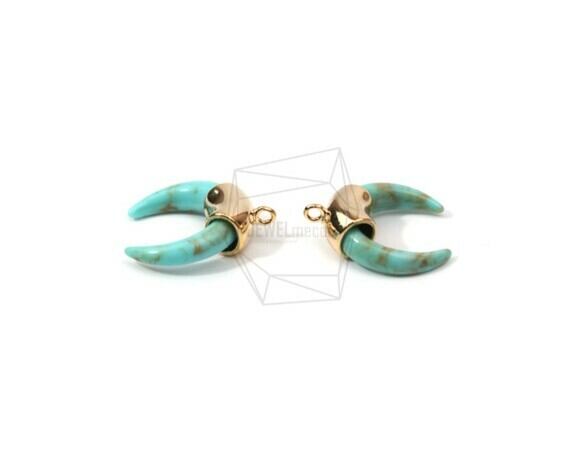 PDT-1280-G/2PCS/Crescent Moon Pendant/Double Horn pendant/16mm X 17mm/Gold Plated Over Brass