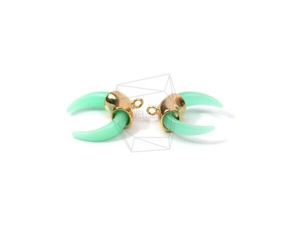 PDT-1283-G/2PCS/Crescent Moon Pendant/Double Horn pendant/16mm X 17mm/Gold Plated Over Brass