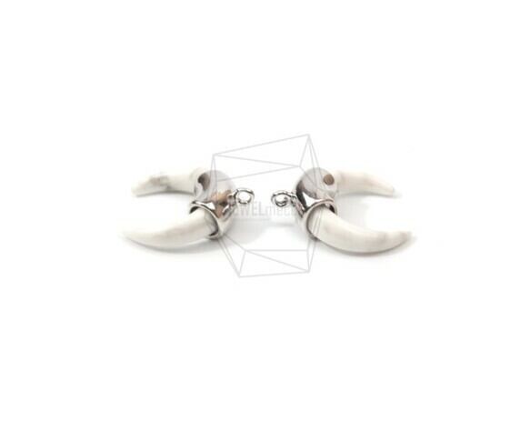PDT-1284-R/2PCS/Crescent Moon Pendant/Double Horn pendant/16mm X 17mm/Rhodium Plated Over Brass