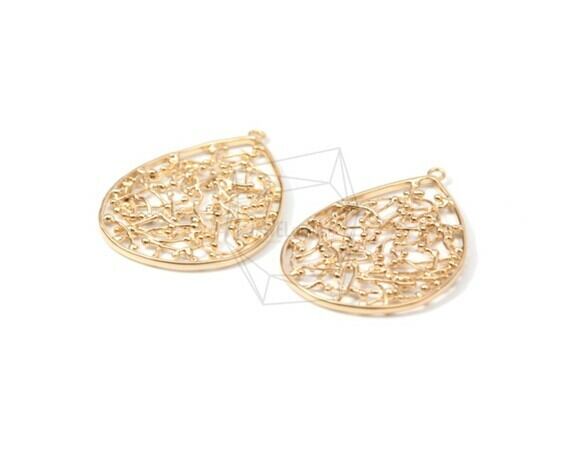 PDT-1291-MG/2PCS/Intricate Tear Drop Pendant/25mm X 35mm/Matte Gold Plated Over Brass