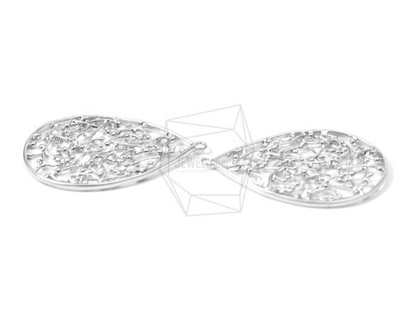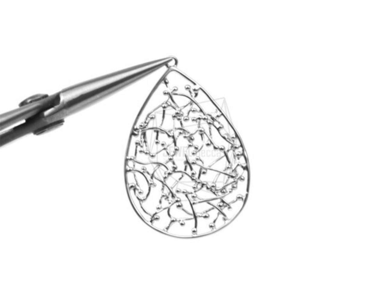 PDT-1291-MR/2PCS/Intricate Tear Drop Pendant/25mm X 35mm/Matte Rodium Plated Over Brass