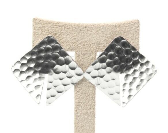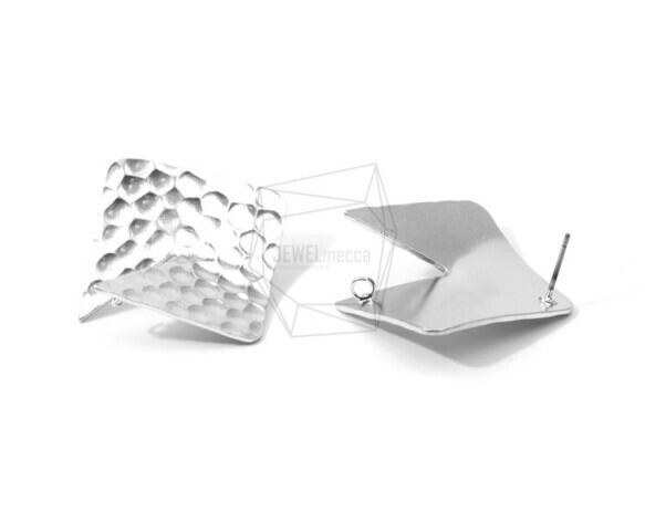 ERG-634-MR/2PCS/Split Rhombus Hammered Texture Post Earring/35mm X 35mm/Matte Rhodium Plated Over Brass , Titanium Post