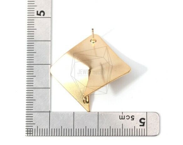 ERG-636-MG/2PCS/Split Rhombus Brushed Texture Post Earring/35mm X 35mm/Matte Gold Plated Over Brass , Titanium Post