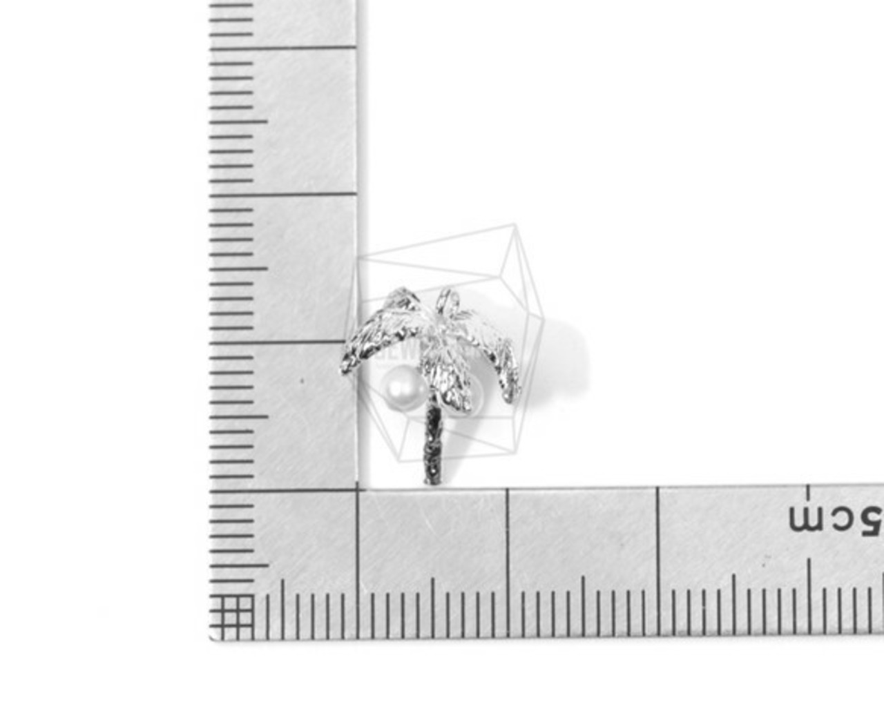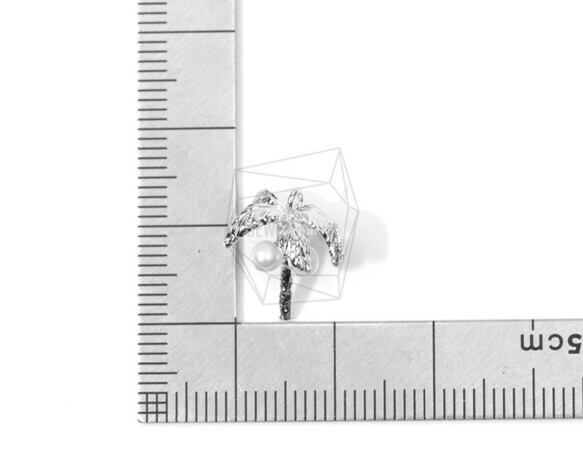 PDT-1364-MR/2PCS/Palm Tree with pearls Pendant/15mm X 15mm/Matte Rhodium Plated Over Brass ,Imitation Pearl