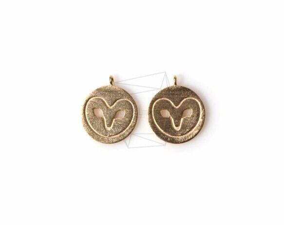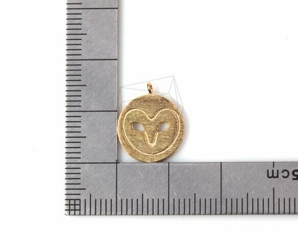 PDT-1194-MG/2Pcs-Owl face Pendant/ 8mm x 15mm /Matte Gold Plated over brass