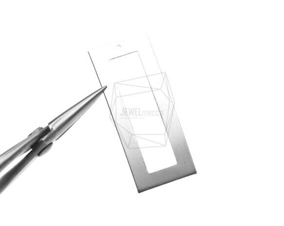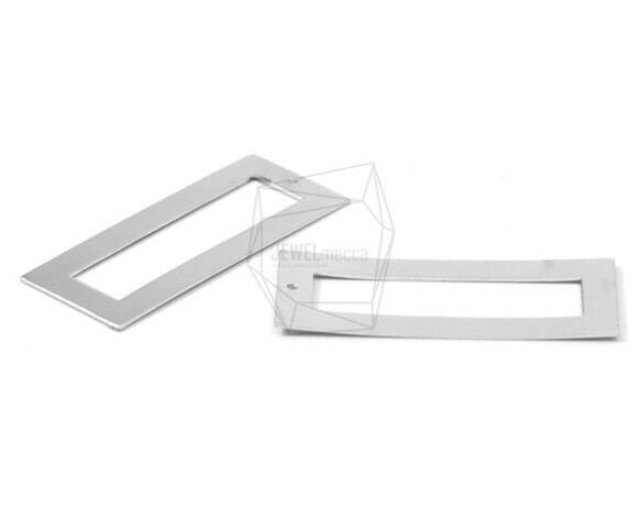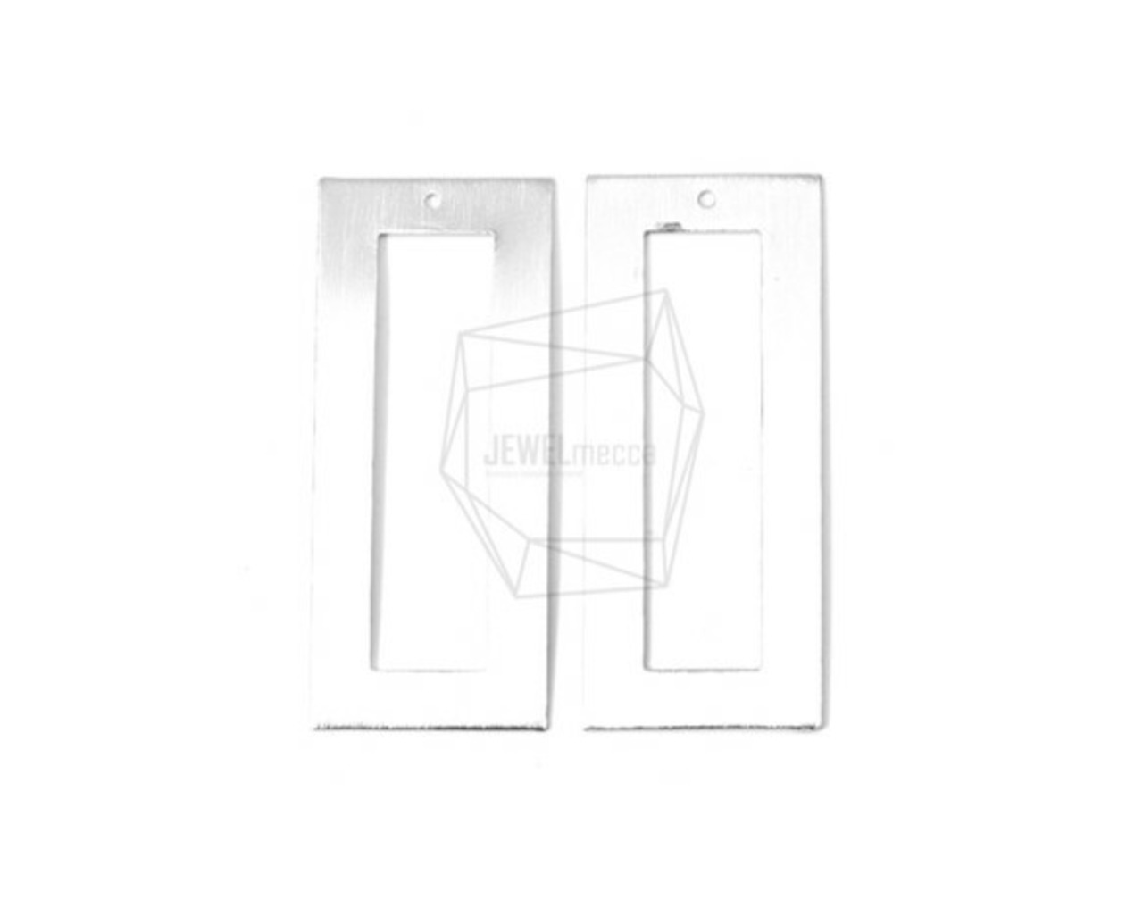 PDT-1340-MR/2PCS/Long Square Frame Brushed Texture Pendant/20mm X 50mm/Matte Rhodium Plated Over Brass