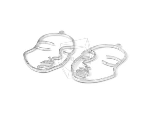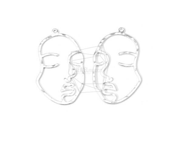 PDT-1351-MR/2PCS/Wire Face Pendant/25mm X 40mm/Matte Rhodium Plated Over Brass