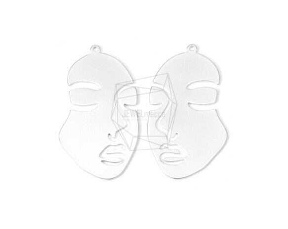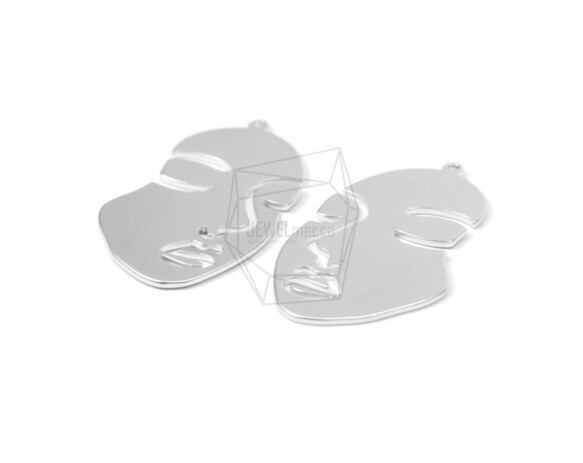 PDT-1352-MR/2PCS/Abstract Face Pendant/25mm X 40mm/Matte Rhodium Plated Over Brass