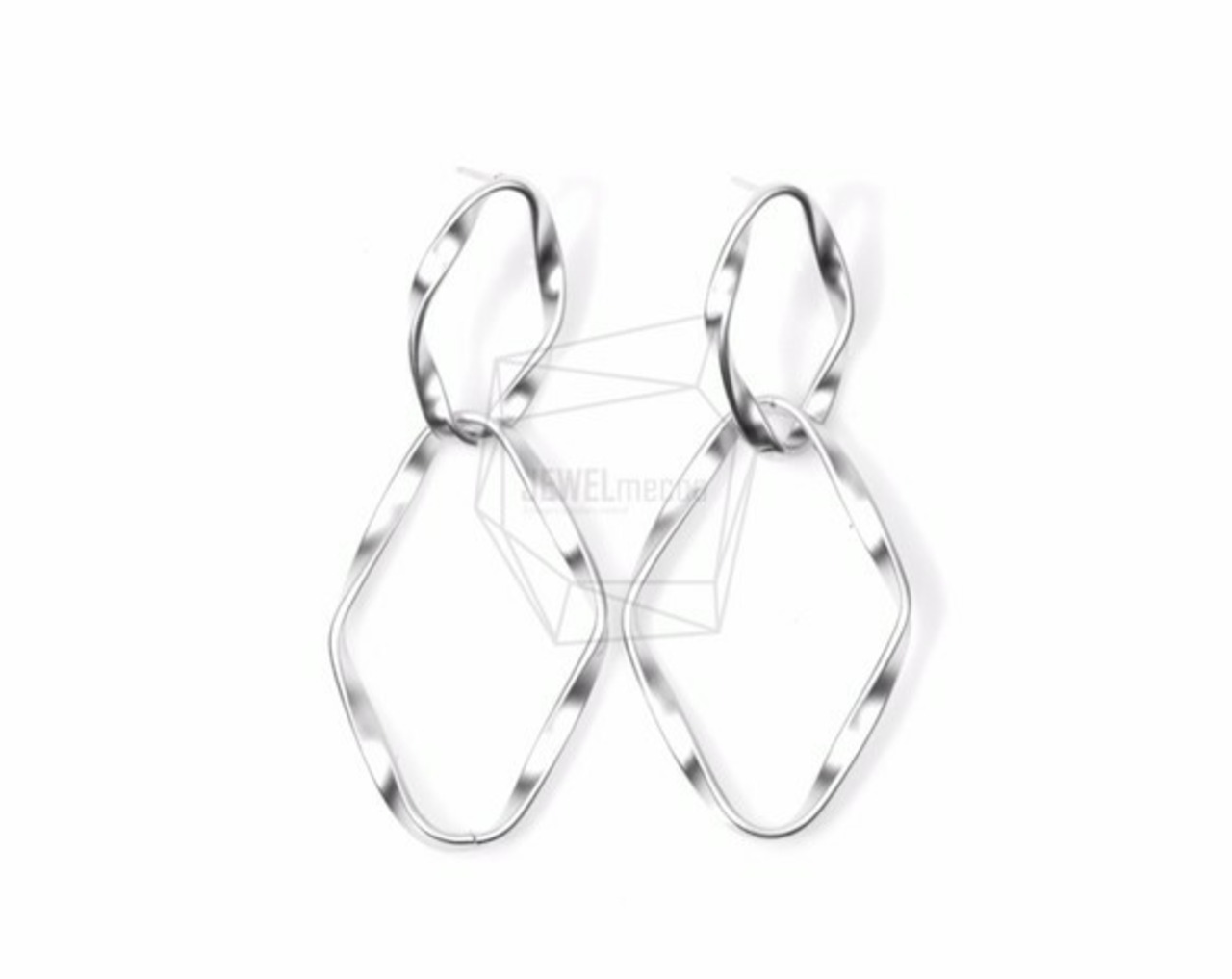 ERG-533-MR/2PCS/Twisted Hoop Link Ear Post/25mm x60mm/Matte Rhodium Plated over Brass