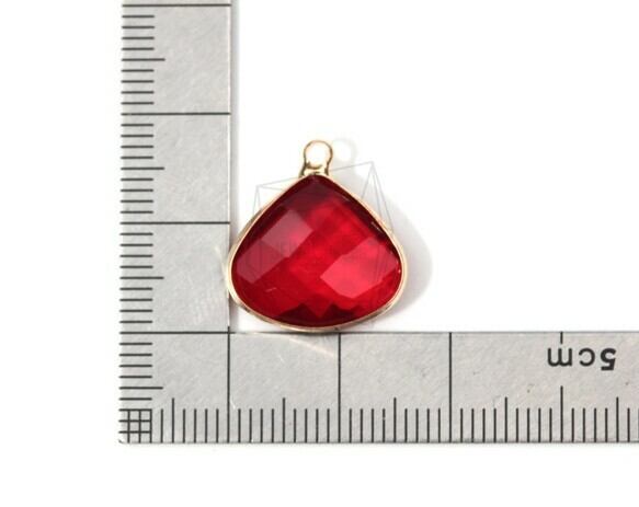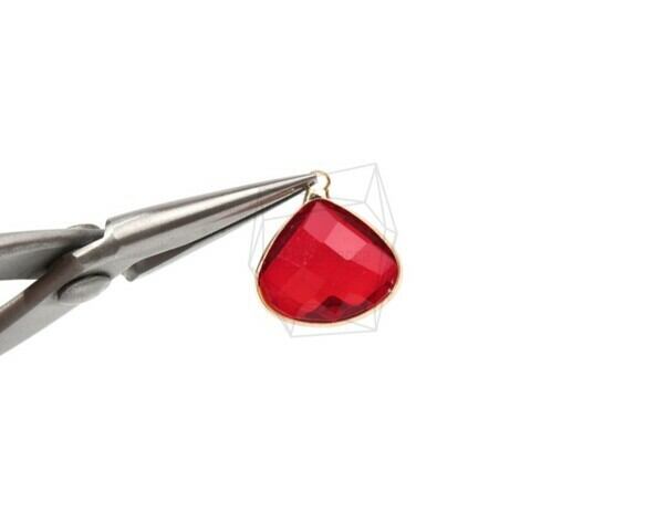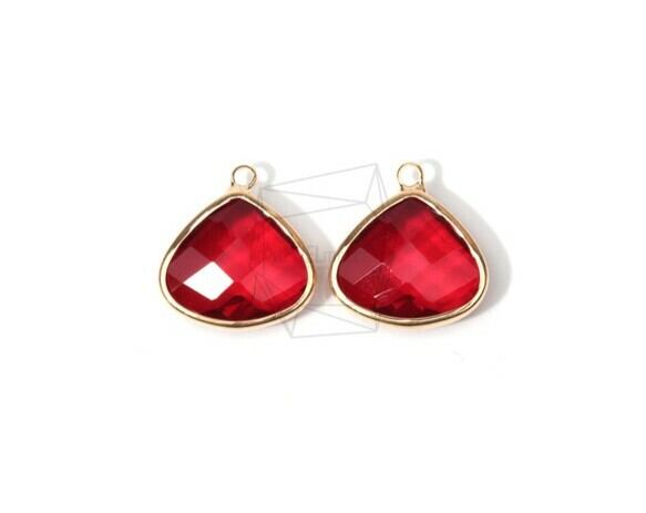 GLA-110-G/2PCS/Triangle Framed Stone Charm(Red)/15mm X 15mm/Gold Plated Over Brass , Glass