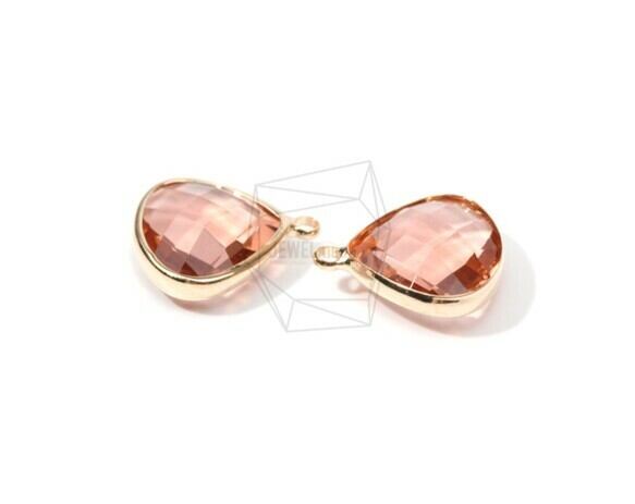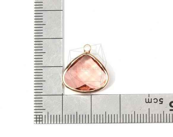 GLA-118-G/2PCS/Triangle Framed Stone Charm(Orange)/15mm X 15mm/Gold Plated Over Brass , Glass