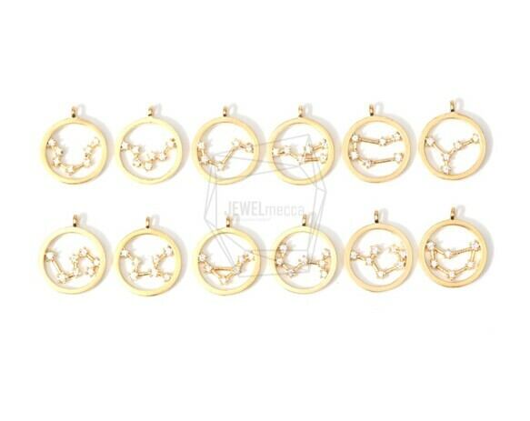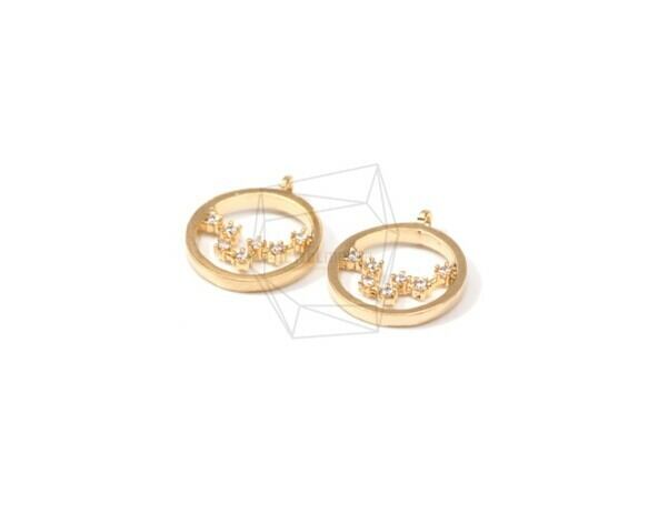 PDT-1367-MG/2PCS/Pisces Pendant/10mm X 10mm/Matte Gold Plated Over Brass , Cubic Zirconia