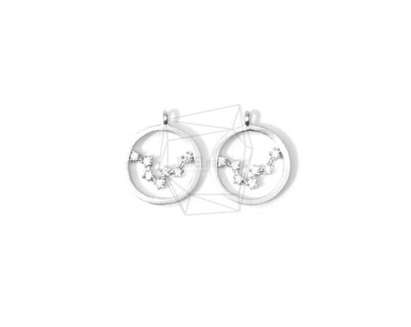 PDT-1367-MR/2PCS/Pisces Pendant/10mm X 10mm/Matte Rhodium Plated Over Brass , Cubic Zirconia