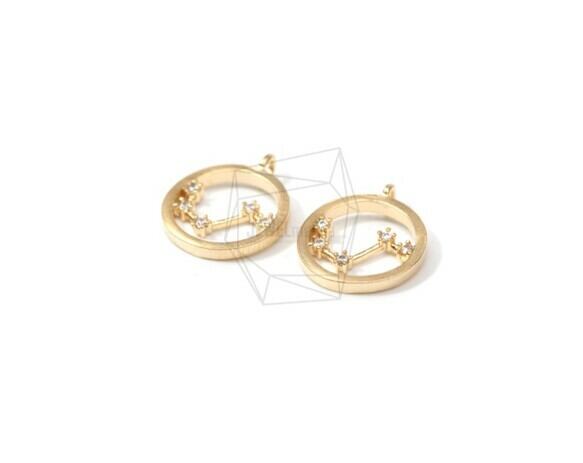 PDT-1368-MG/2PCS/Aries Pendant/10mm X 10mm/Matte Gold Plated Over Brass , Cubic Zirconia