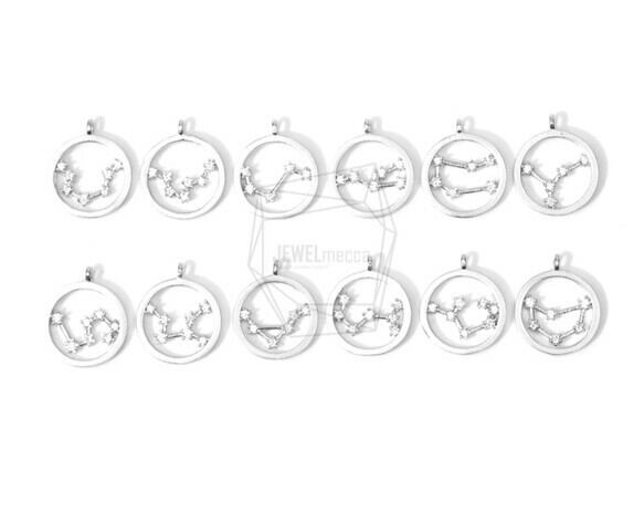 PDT-1370-MR/2PCS/Gemini Pendant/10mm X 10mm/Matte Rhodium Plated Over Brass , Cubic Zirconia